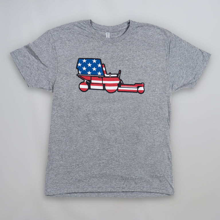 $20.00 $35.00This Mower Flag Tee, pairs well with our hat of the same design and shows off the fact that Walker Mowers are made in the USA. The perfect way to show your support for our mowers and stay comfortable. This classic tee is made with a soft, lightweight fabric to ensure a comfortable fit all day long.